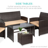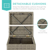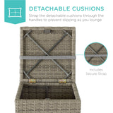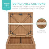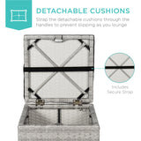 DETACHABLE CUSHIONS: Thick cushions are made with straps that are secured around the seat top, so you can lounge comfortably and store them away after use