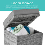HIDDEN STORAGE: Removable tops allow you to effortlessly store cushions, pool toys, gardening supplies, and more inside this set of ottomans