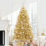 Prelit Gold Artificial Tinsel Christmas Tree w/ Foldable Stand