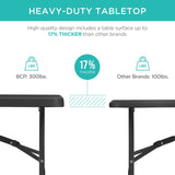 HEAVY-DUTY TABLE TOP: Place food, drinks, and much more on the strong, easy-to-clean table top with high-quality plastic up to 17% thicker than other brands, plus 3x the weight capacity at 300 lbs.