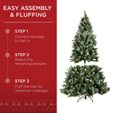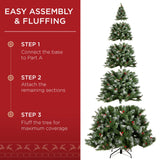 Pre-Lit Christmas Pine Tree w/ Pine Cones, Flocked Branch Tips, Berries