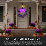 • 36IN WREATH & BOW SET: This attractive decoration is the perfect way to turn your door, window, or entryway walls into a spooky setting