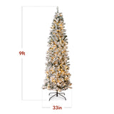Pre-Lit Snow Flocked Artificial Pencil Christmas Tree