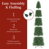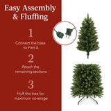EASY ASSEMBLY & FLUFFING: Simply connect the base to the largest section before attaching the remaining sections and fluffing the branches; Approximate Fluffing Times (4.5/6ft/7.5ft/9ft/12ft): 15-30 mins/ 30-45 mins/ 45-60 mins/ 1-1.5 hrs./ 1.5-2 hrs