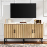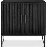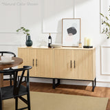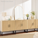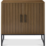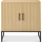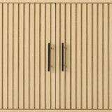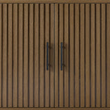 • SLATTED DESIGN WITH NATURAL WOOD GRAIN: Features slatted pattern on the doors, highlighting the wood grains while adding texture and depth to the modern style