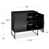2-Door Slatted Storage Cabinet Accent Furniture w/ Foot Pads