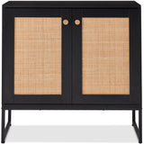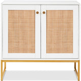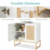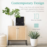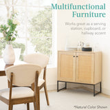 2-Door Rattan Storage Cabinet Accent Furniture for Living Room w/ Foot Pads