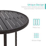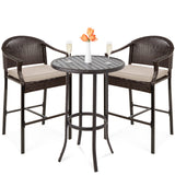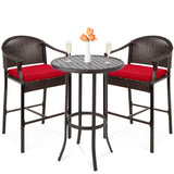 3-Piece Outdoor Bistro Wicker Table Bar Set w/ Bar Stools, Footrests