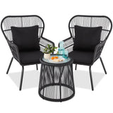 3-Piece Patio Wicker Conversation Bistro Set w/ 2 Chairs, Glass Top Table